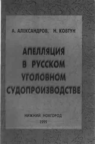 Александров А., Ковтун Н. Апелляция в русском уголовном судопроизводстве. Нижний Новгород, 1999.