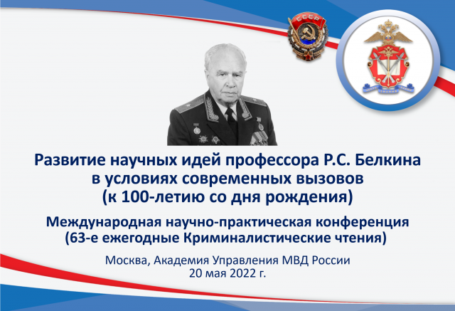 Международная научно-практическая конференция «Развитие научных идей профессора Р.С. Белкина в условиях современных вызовов (к 100-летию со дня рождения) (63-е ежегодные Криминалистические чтения)