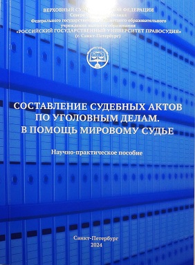 Составление судебных актов по уголовным делам. В помощь мировому судье : Научно-практическое пособие / Т. Н. Долгих, Е. Г. Зейдлиц, Т. В. Исакова [и др.]. – Санкт-Петербург : Центр научно-информационных технологий "Астерион", 2024. – 236 с. – ISBN 978-5-00188-551-1. https://elibrary.ru/item.asp?id=75091270